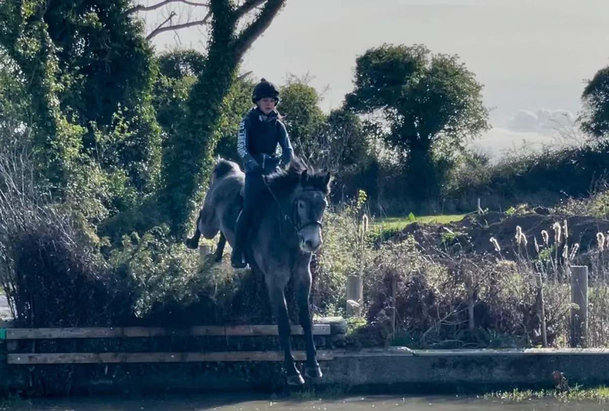 Bono has a great temperament with an "old soul" mentality and a brave, honest jump. He is easy to work with in the stable and has good ground manners. Bono competed 90cm in showjumping and eventing with a junior rider while in Ireland, and is building a lovely flat foundation. He is an easy keeper and goes barefoot. Bono hacks out happily alone or in company.